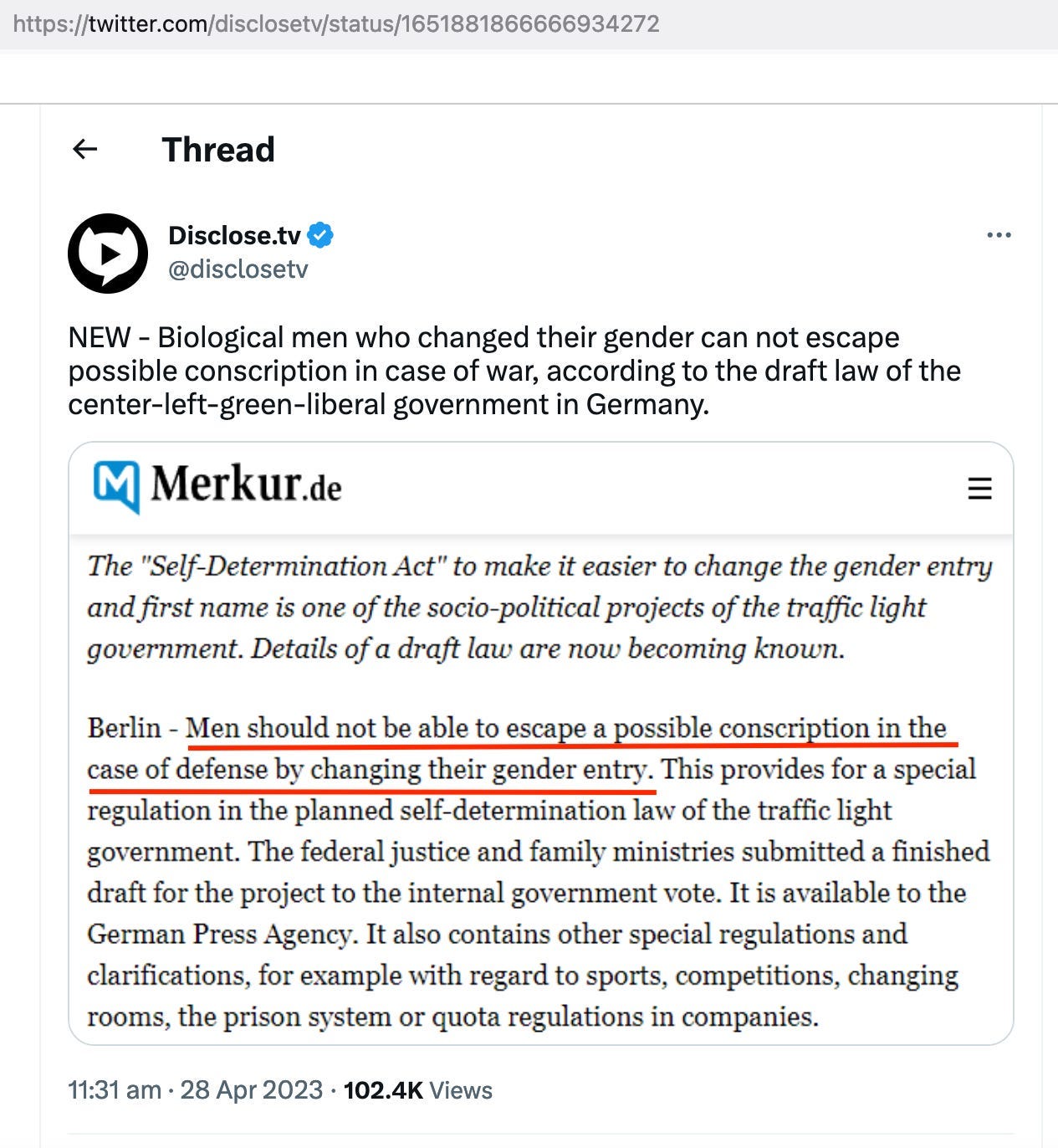 So, fast-forward to today, the New Military Service bill will soon be the law™ of the land in Germany, and it quite openly—that is, in the name of getting ready to fight Russia! Russia! Russia!—marking the high tide of gender-ism in Europe.