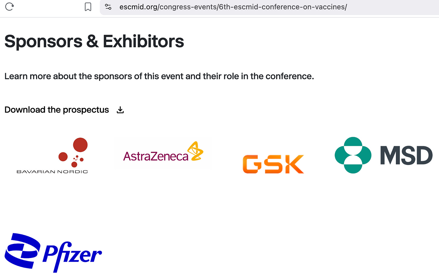 Note that GSK, or GlaxoSmithKline is a seemingly proud sponsor of the ECSMID conference in Lisbon, Portugal, this year (via the prospectus: see the program at p. 4 and the particulars about the breakfast—6,000 euros excl. VAT—and lunch sessions—12,000 euros excl. VAT— sponsored by GSK at p. 10). AstraZeneca—of Covid poison/death juice infamy—also sponsors the ECSMID conference, by the way; and now—back to Claire Lenahan’s reporting™]