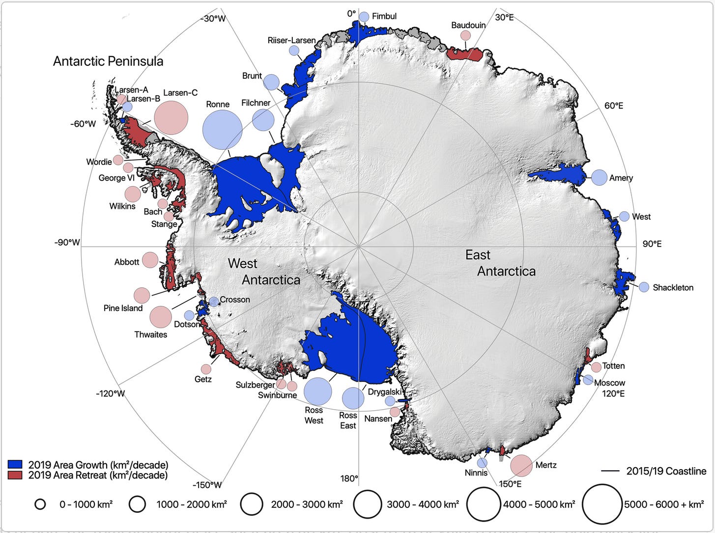 Changes in Antarctic Ice Shelf Area, 2009-19