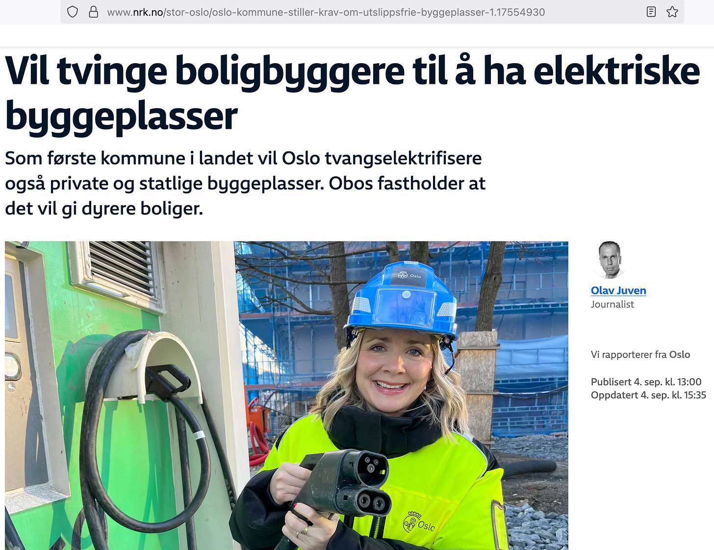 As the first municipality in the country, Oslo will also forcibly electrify private and state-owned construction sites. Obos maintains that it will result in more expensive homes.