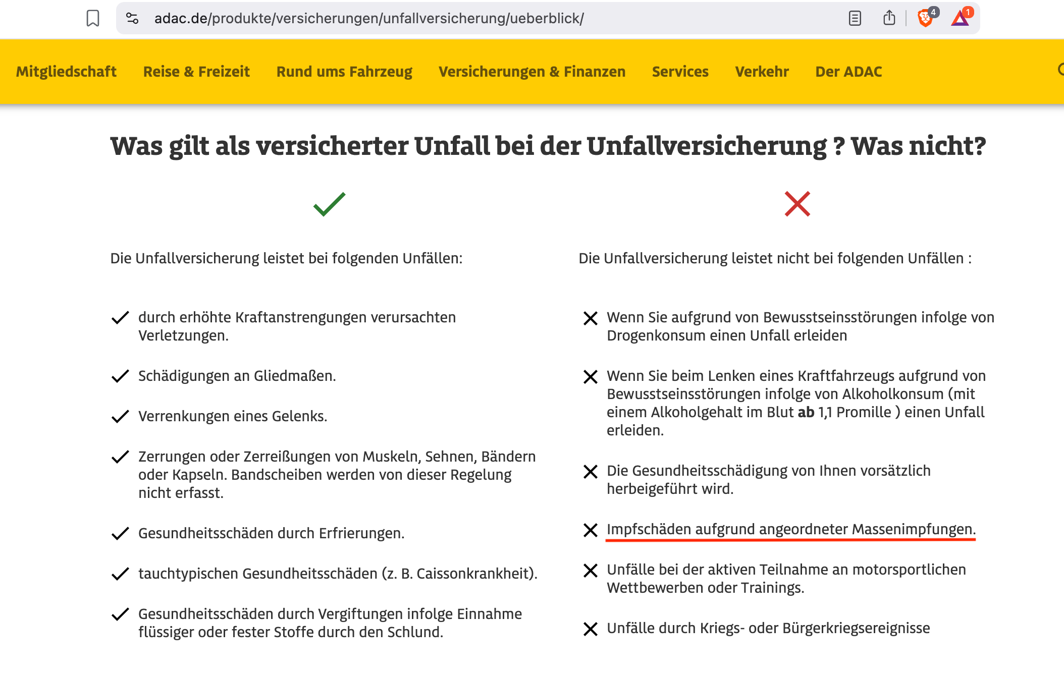 Germany's ADAC updates its insurance policy and now specifically excludes 'vaccine damage deriving from mandated mass vaccination campaigns' from coverage