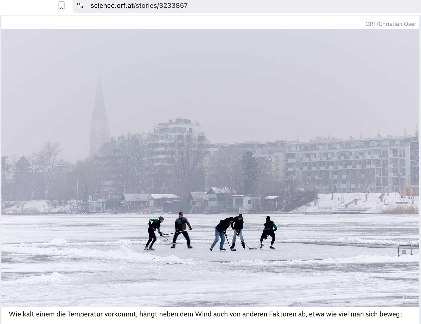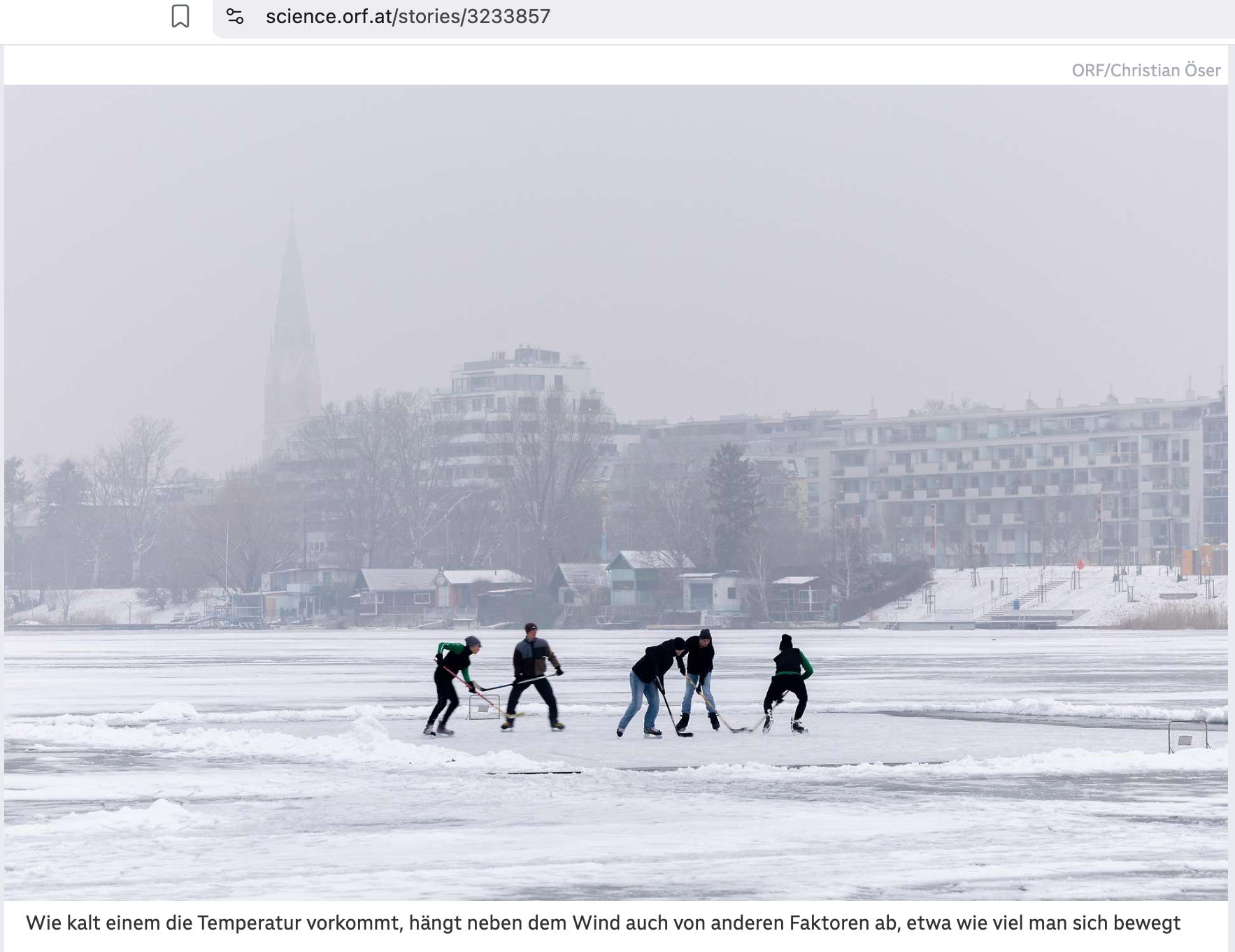 The wind chill effect can be calculated using a formula that was empirically determined through experiments [this is hilariously stupid, for that link doesn’t take you to, say, a scientific paper but to another ORF article from January 2021]. It should be noted, however, that this formula is not entirely precise because, for example, the power of the sun is not taken into account [not only that, this is what the 2021 ORF piece noted: